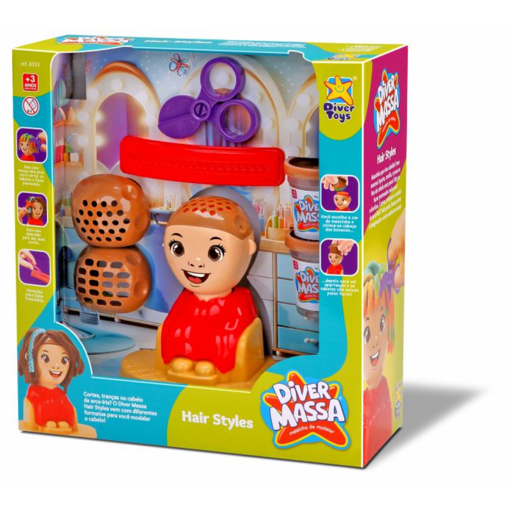 Transforme a brincadeira em um verdadeiro salão de beleza! O Diver Massa Hair Style permite que a criança crie penteados superdivertidos usando massinhas coloridas e acessórios especiais.