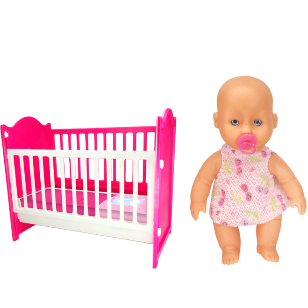 Com 23 cm de altura, ela vem com um lindo bercinho colorido, ideal para colocar a bonequinha para dormir e sonhar tranquilo.