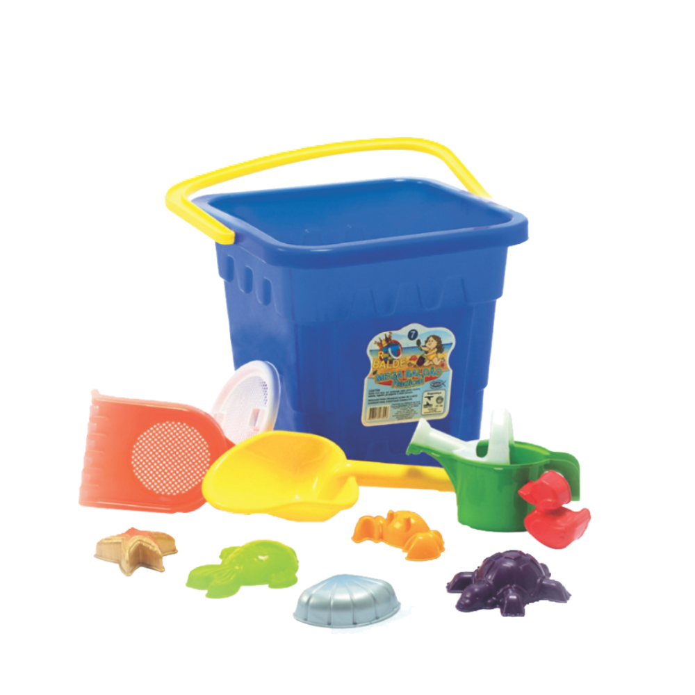 Itens inclusos: balde grande + acessórios diversos para brincar na areia