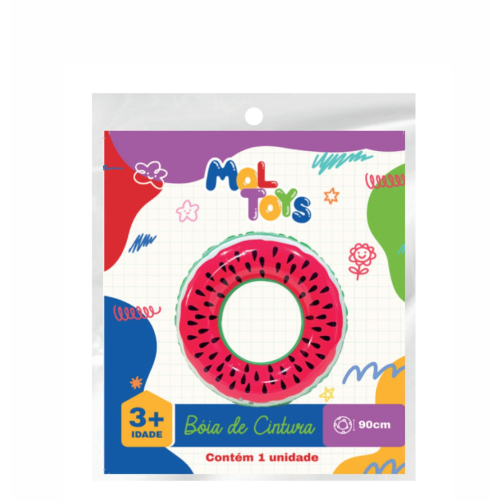 A Boia de cintura da Mol Toys é ideal para lazer e diversão em piscinas e praias. Possui 90 cm de diâmetro e estampa decorada com tema de frutas, trazendo um visual alegre e descontraído para os momentos de descanso e brincadeira na água. Produzida em PVC resistente, é leve, confortável, fácil de inflar e transportar.