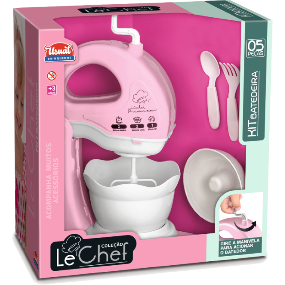 Prepare deliciosas brincadeiras com o Kit Batedeira New LE Chef! Com design moderno e funcional, essa batedeira de brinquedo é perfeita para estimular a imaginação e o faz de conta das crianças.