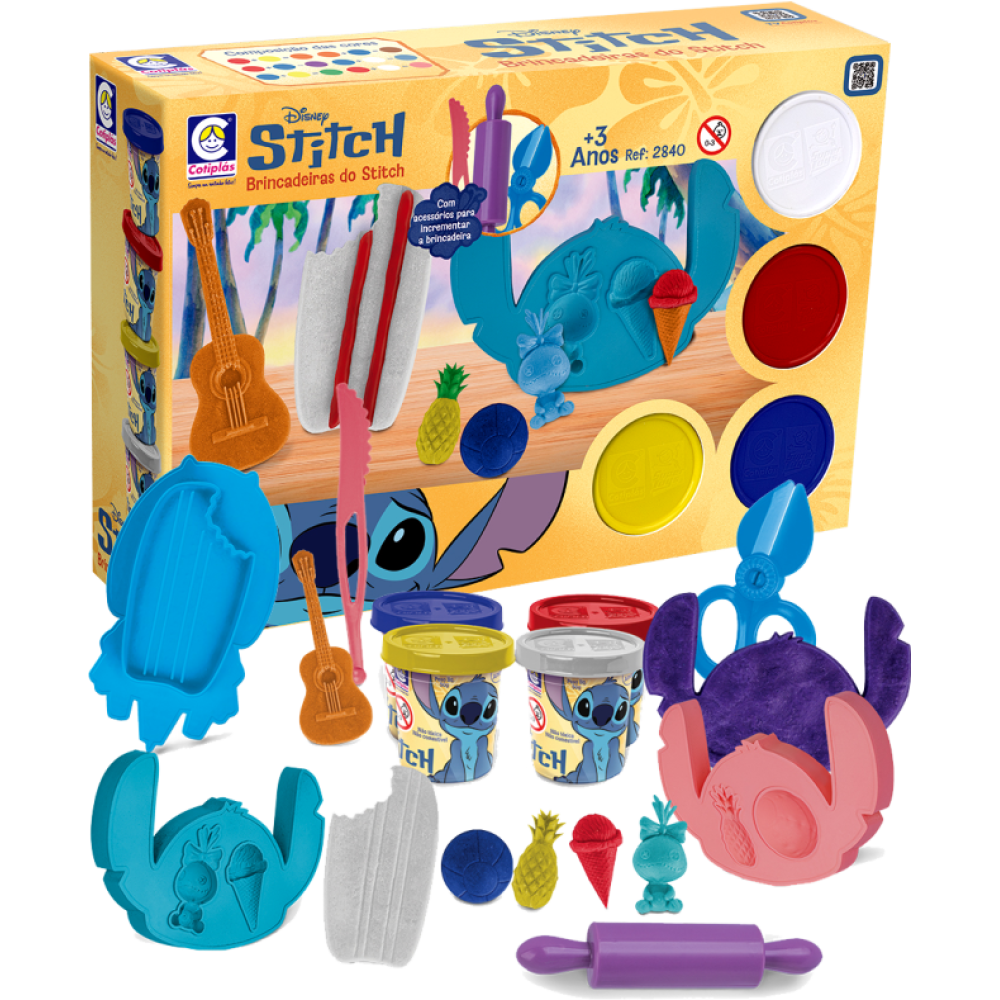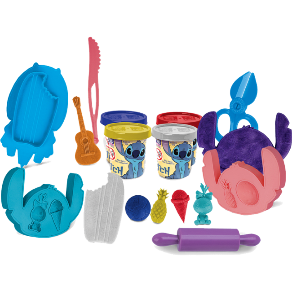 Com massinhas coloridas e diversos moldes e ferramentas temáticas, os pequenos poderão criar formas, personagens e cenários inspirados no universo de Lilo & Stitch.