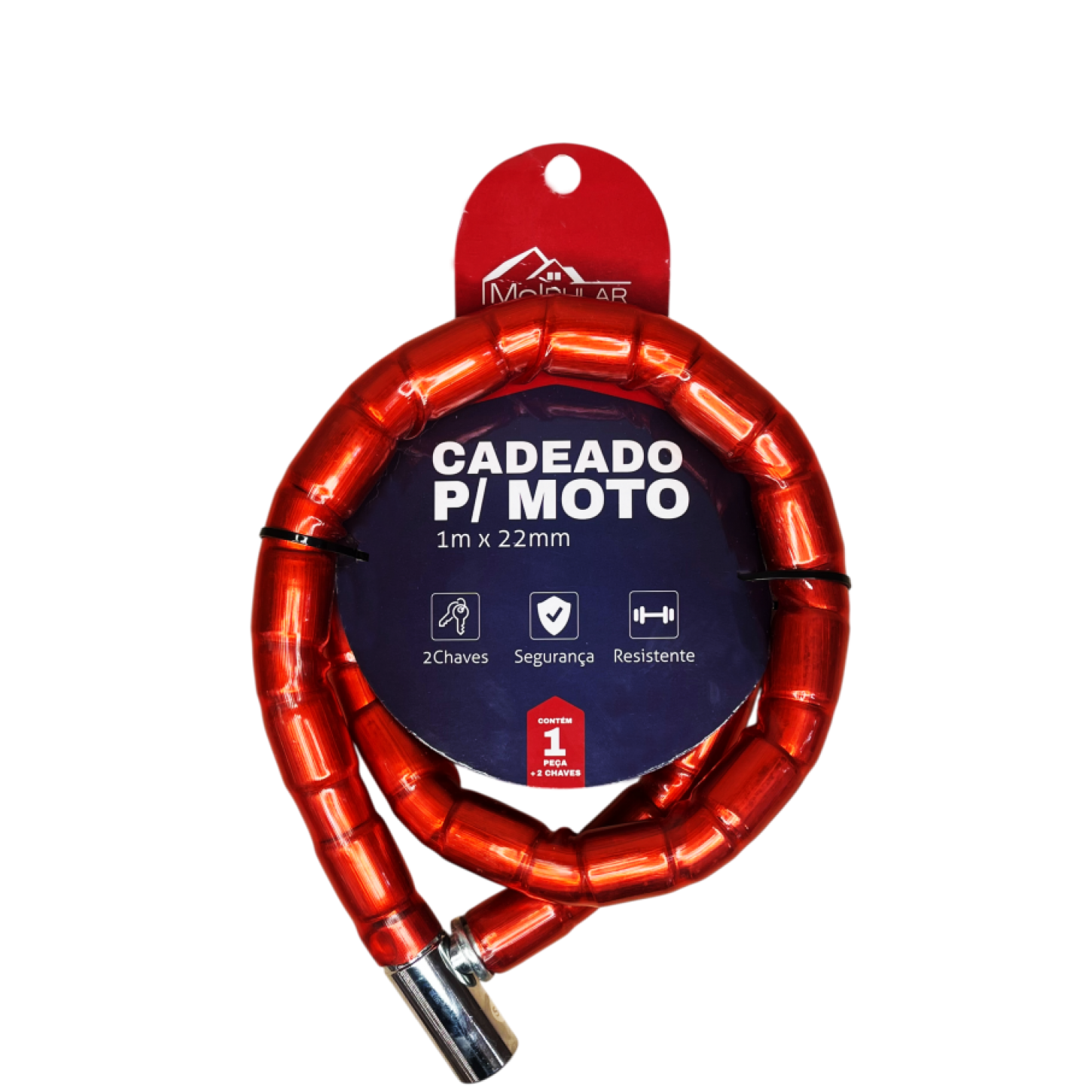 O cadeado para moto de 1 metro x 22mm garante segurança reforçada e praticidade no dia a dia. Fabricado em cabo de aço de alta resistência com revestimento em PVC, oferece maior durabilidade e proteção contra tentativas de corte, sem danificar a pintura. Acompanha duas chaves para facilitar o uso.